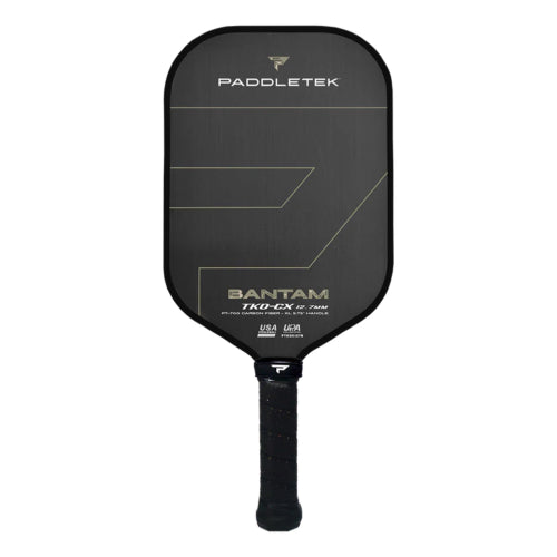 The Bantam TKO-CX (XL handle) was designed in conjunction with top pickleball pro, Christian Alshon, to provide a combination of power, spin, and reach. PT-700 unidirectional RAW carbon fiber is combined with our legendary Bantam core to give serious players max power and spin capability. A 5.75" handle reduces wind drag and allows for a two-handed backhand, while a 16.5" overall paddle length increases speed at the point of contact—exponentially increasing power with every hit.