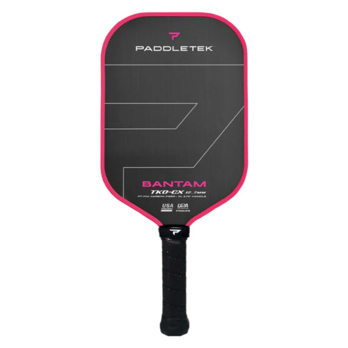 The Bantam TKO-CX (XL handle) was designed in conjunction with top pickleball pro, Christian Alshon, to provide a combination of power, spin, and reach. PT-700 unidirectional RAW carbon fiber is combined with our legendary Bantam core to give serious players max power and spin capability. A 5.75" handle reduces wind drag and allows for a two-handed backhand, while a 16.5" overall paddle length increases speed at the point of contact—exponentially increasing power with every hit.