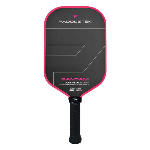 The Bantam TKO-CX (XL handle) was designed in conjunction with top pickleball pro, Christian Alshon, to provide a combination of power, spin, and reach. PT-700 unidirectional RAW carbon fiber is combined with our legendary Bantam core to give serious players max power and spin capability. A 5.75" handle reduces wind drag and allows for a two-handed backhand, while a 16.5" overall paddle length increases speed at the point of contact—exponentially increasing power with every hit.